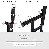 • 特徴:バーベル受けには防音と衝撃吸収効果があるラバーが付属しています。ディップスバーとプレートラックがある